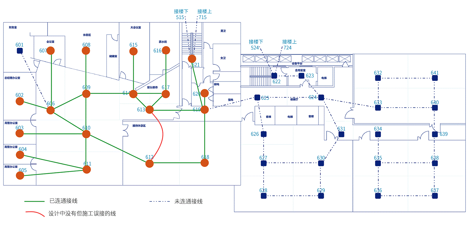 导入带节点名称的CPN连接图纸,系统能自识别,对CPN网络拓扑 是否与设计一致,并给提示,如不一致,调整相应CPN接线,直到通过拓扑检查。